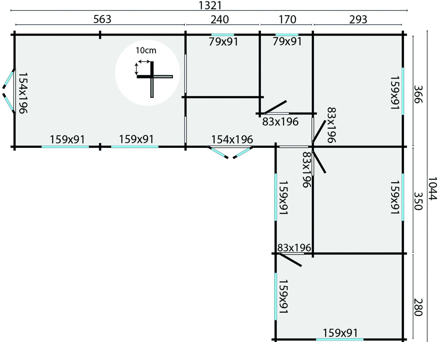 Sommerhus / Hytte Azores 70 mm 941 x 848 cm Med Pvc vinduer & Døre