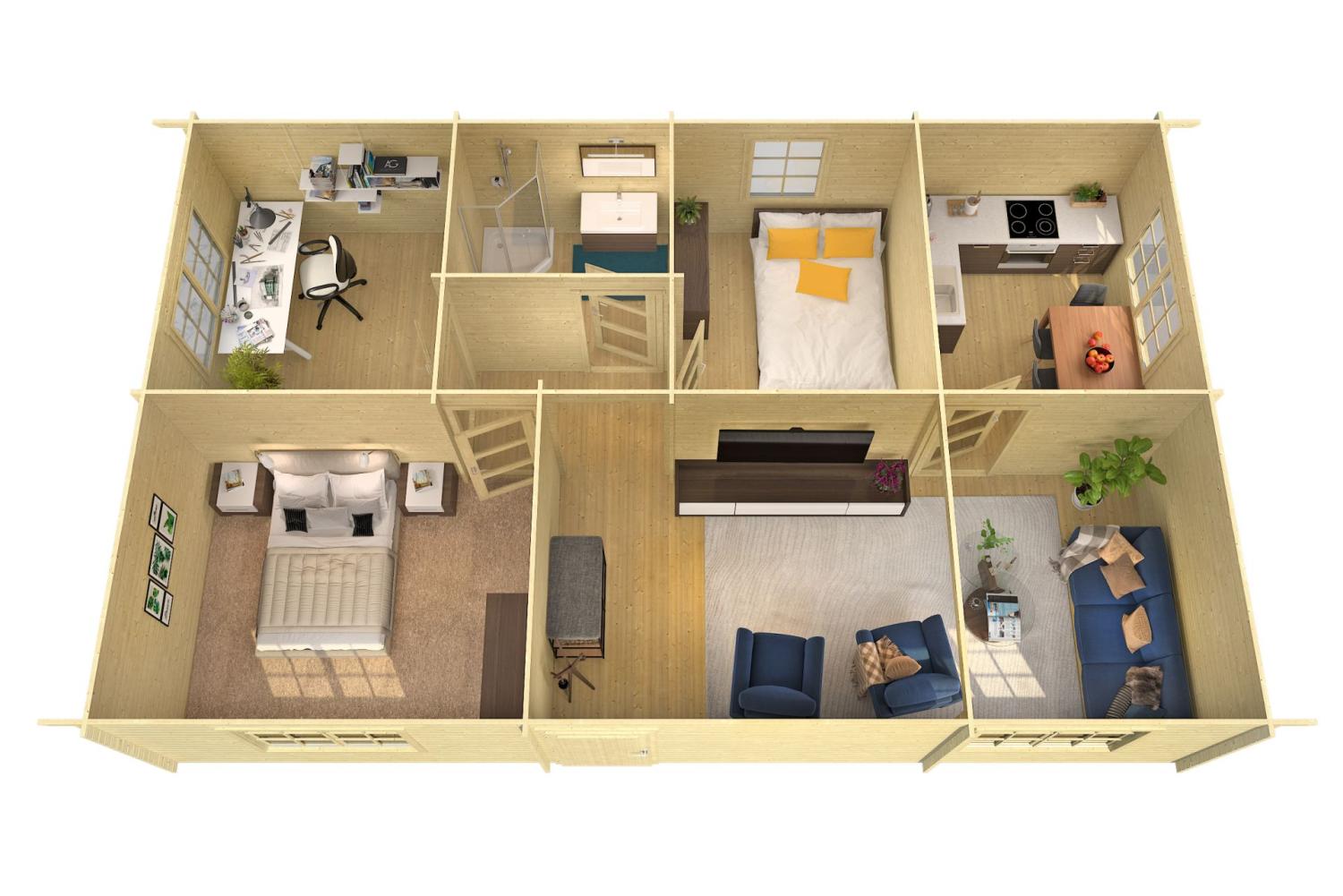 BIG LLANES i træ 44 mm BJÆLKEHYTTE 5.9 M X 5.3 M
