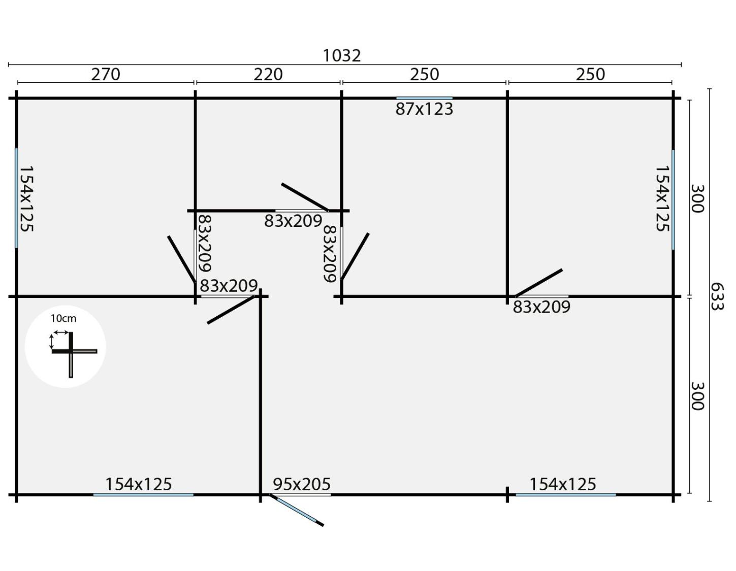 Sommerhus / Hytte Azores 70 mm 941 x 848 cm Med Pvc vinduer & Døre