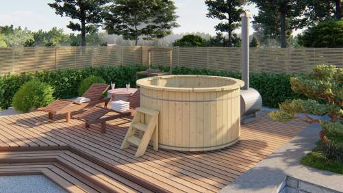 Vildmarksbad med ekstern Brændeovn Ø180 cm Thermowood